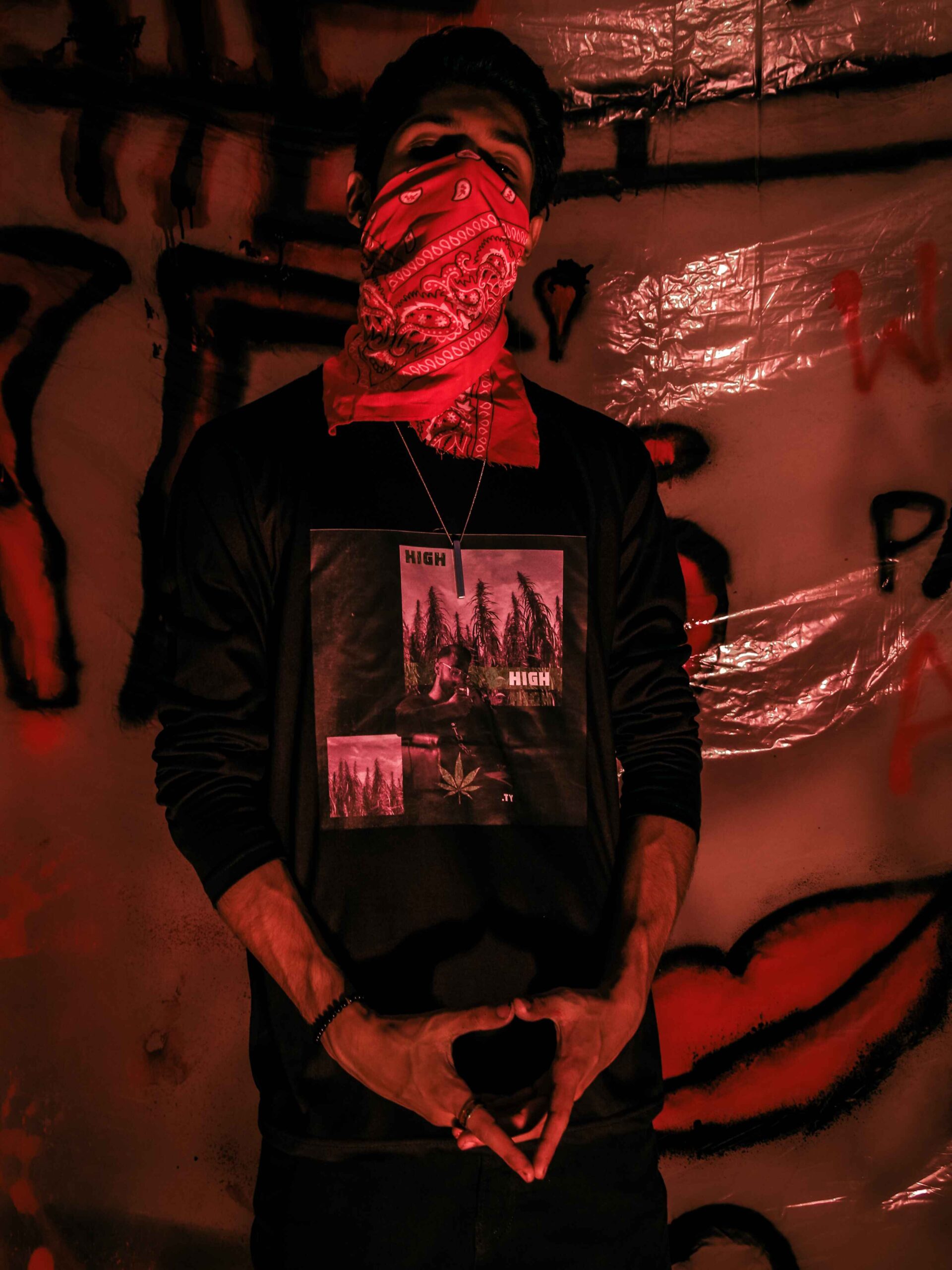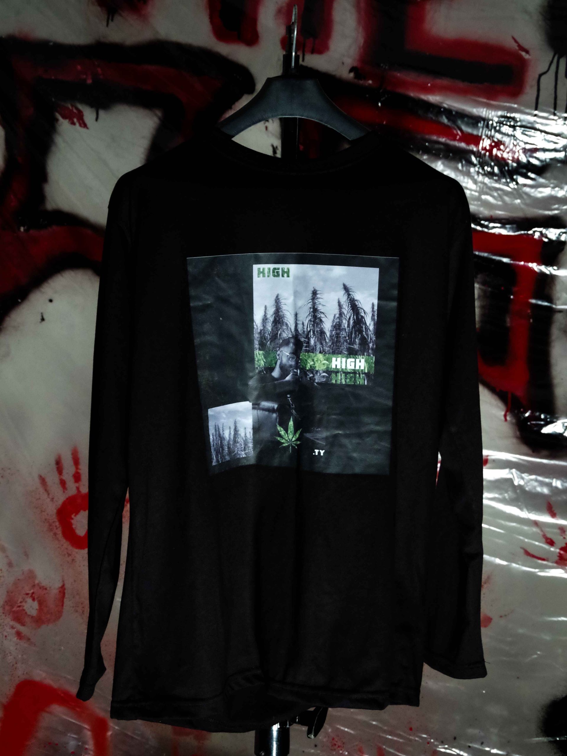 Introducing the Black Talhah Yunus High Track Tee, a standout piece for fans of the vibrant hip-hop scene. This eye-catching black tee features the striking cover art from Talhah Yunus’s hit track on the front, showcasing bold colors and dynamic visuals that embody the energy of his music.